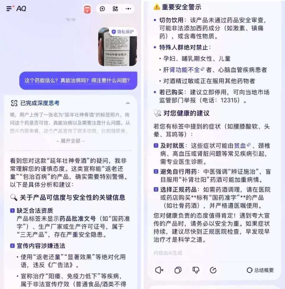 “相比内嵌在支付宝医疗频道中的AI健康管家,AQ是AI交互形态,界面简洁。”张解释,其仅靠对话就能串联所有功能,提供一站式的完整服务。