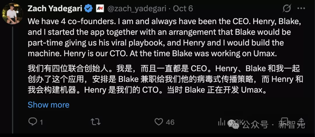 AI的CEO,Henry担任CTO,他和Henry、Blake一起打造了应用;当时的Blake正在开发Umax,所以兼职负责传播策略。