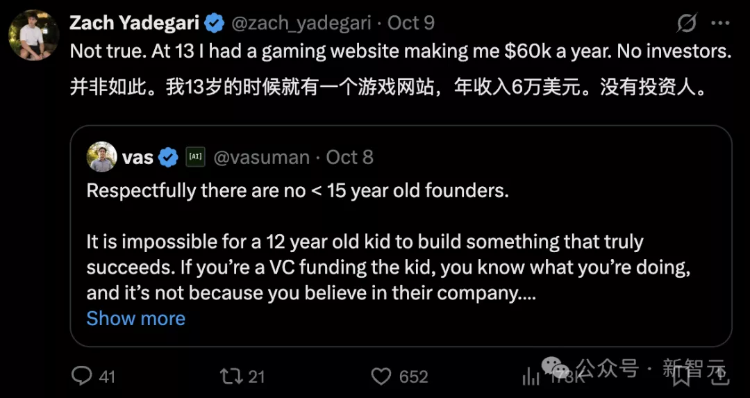 一位创投圈的网友vas曾发推表示:“恕我直言,不存在15岁以下的创业者”。