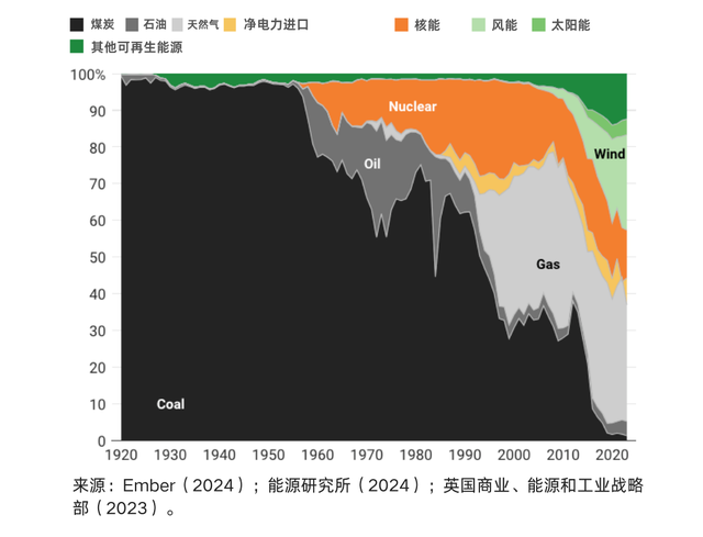 英国过去一个世纪能源构成变化