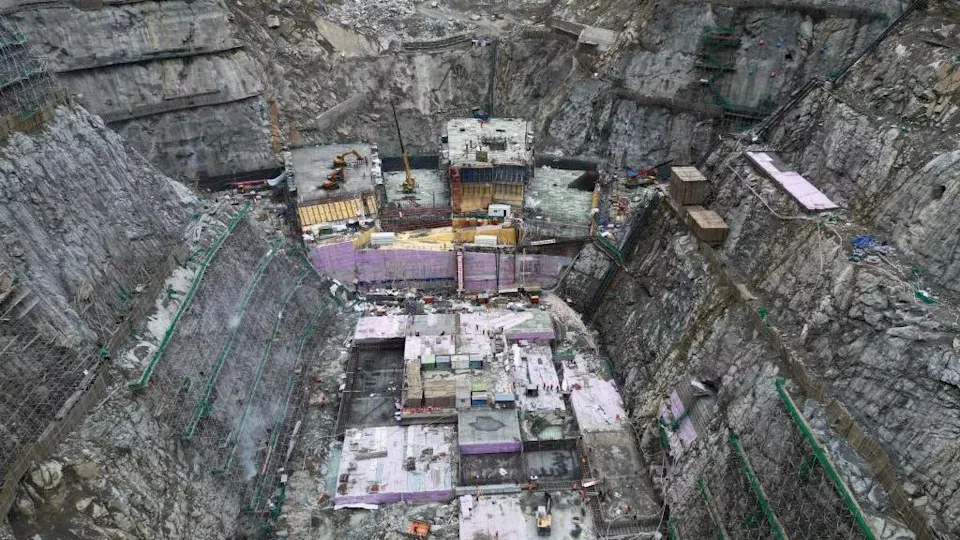 除了地缘政治因素外,开发雅鲁藏布江还引发关于生态保护的担忧,工程可能涉及多处大型隧道。图为西藏山南一处水电站施工现场。 [Getty Images]