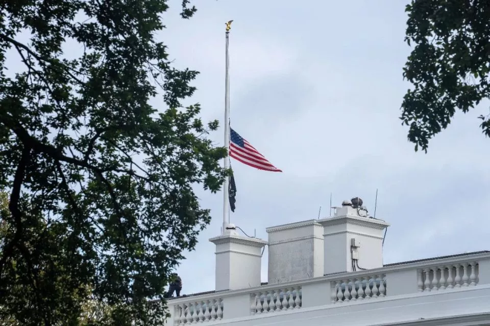 9月10日查理·柯克遭枪击身亡,美国首都华盛顿白宫降半旗致哀/新华社记者胡友松摄