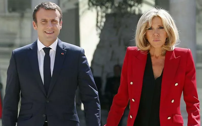 法国总统埃马纽埃尔·马克龙与布丽吉特·马克龙(右)