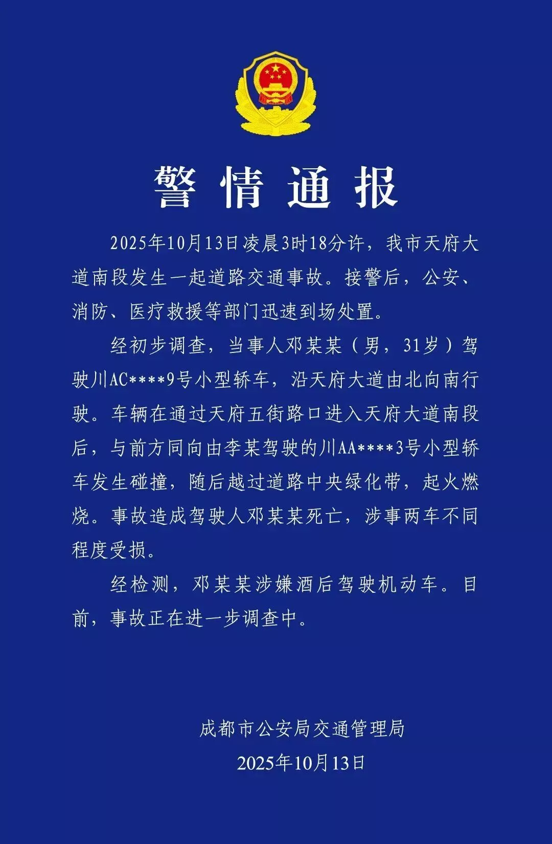 今天凌晨3时18分,四川成都天府大道南段,一辆小米SU7 Ultra的车辆在夜色中燃爆。目击者的行车记录仪显示,这辆车以远超限速的速度超越前方车辆,随后失控摇摆,撞击绿化带,翻滚至对向车道。下一秒,火光冲天。