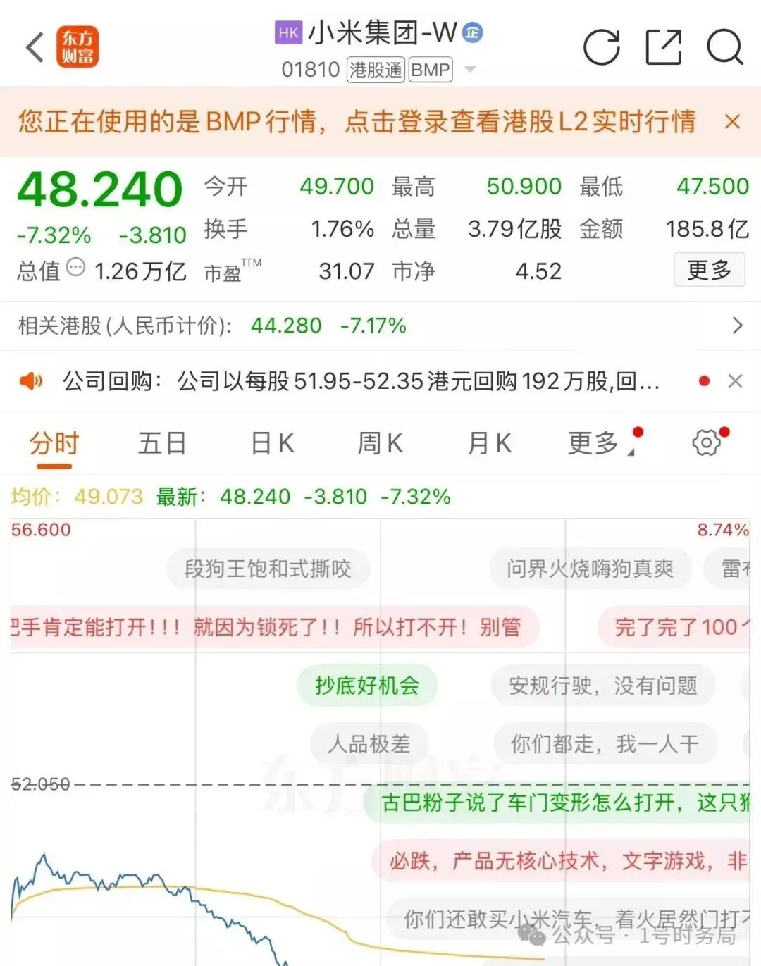 资本市场的反应更直接,截至发稿前:小米股价单日暴跌近8%,市值蒸发超百亿港元。