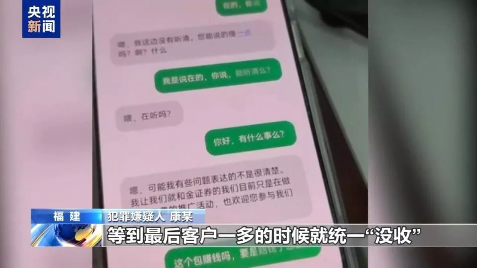 犯罪嫌疑人 康某:慢慢勾引他们上钩,前期多少钱都可以提现,最多的一次是一个亿的大盘,拿袋子一百万元一袋码起来放到房间。