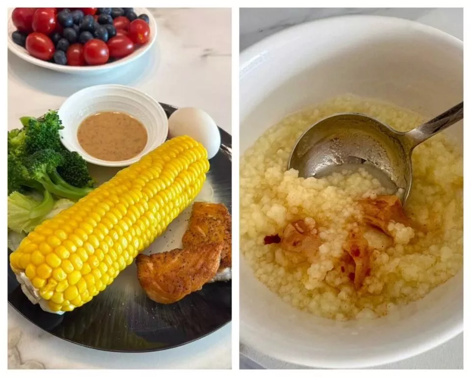 冰冰雇主烹饪的西式早餐(左)、冰冰钟爱的中式早餐(右)
