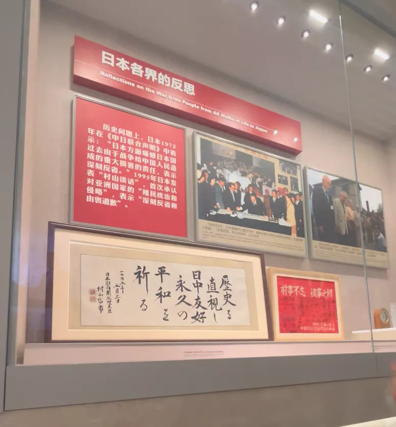 1995年5月,村山访问中国,并成为首位到访卢沟桥和中国人民抗日战争纪念馆的日本在任首相,并留下了“正视历史,祈日中友好、永久和平”的题词。