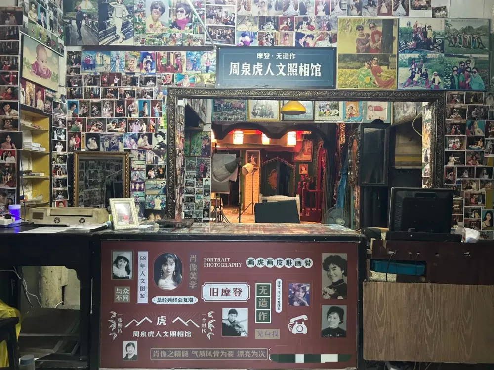 墙上的照片越贴越多,店里的人来来去去,当初觉得周泉虎性子稳、聪明,把他招进照相馆的师傅十来年前生病去世了。和周泉虎一块下乡当知青的朋友,曾经在照相馆帮忙,干到退休的年纪离开了。他也收过徒弟,徒弟给他抓蟋蟀,他教会了徒弟怎么拍照、冲胶卷,后来徒弟谈了女朋友,回老家结婚了。
