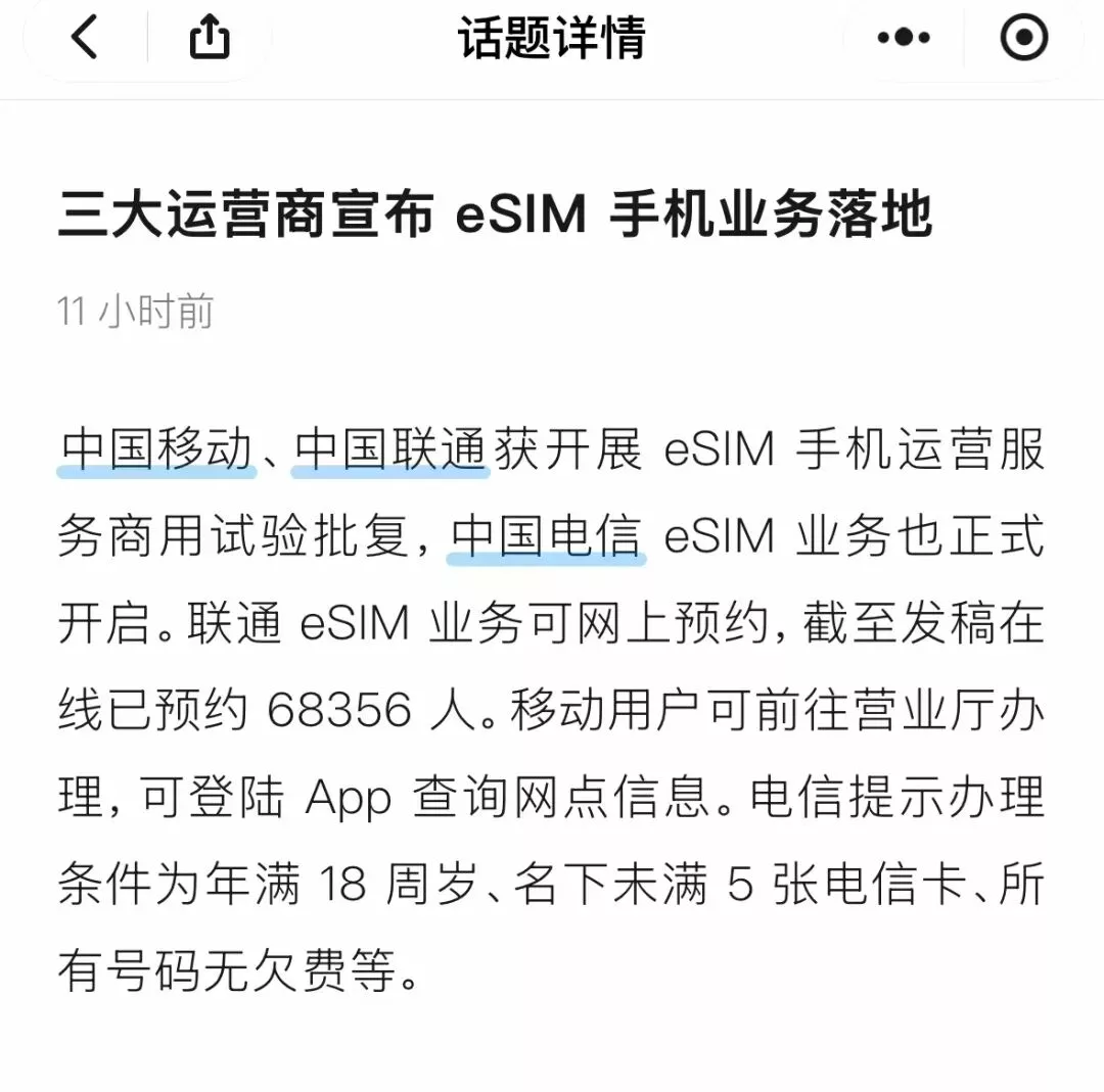 这两天三大运营商宣布全力开放eSIM业务,以支持iPhone Air,整件事让我感觉有些悲哀和讽刺。
