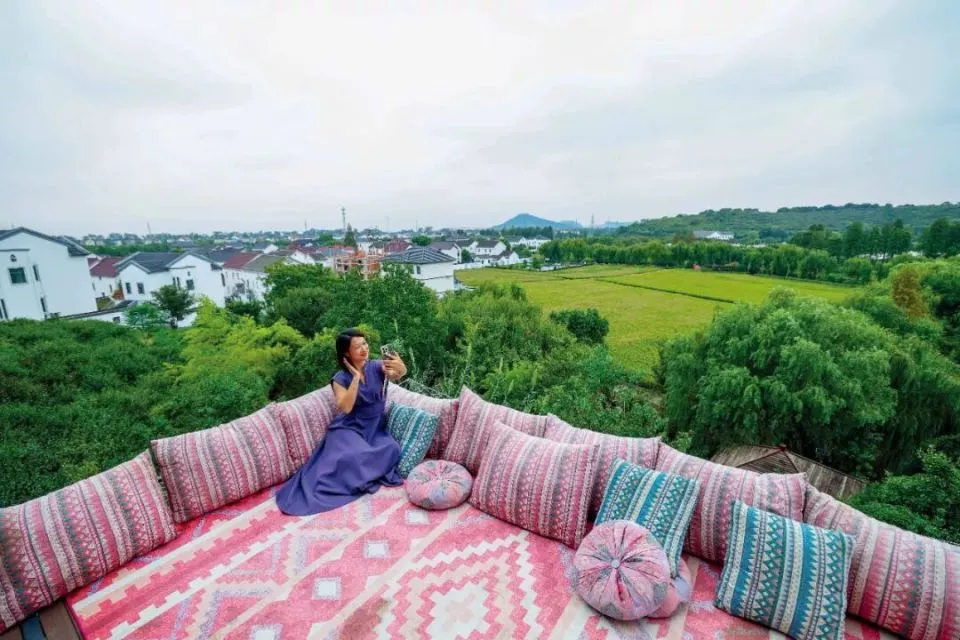 浙江嘉兴市海盐县沈荡镇,旅居在“桃源文溪”山村景区的游客。图/新华