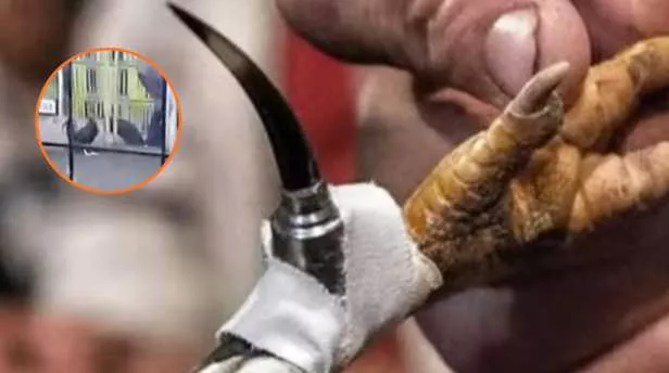 参加斗鸡比赛的鸡只脚部常绑有锋利金属刀片,一旦攻击极具杀伤力。(图/Panamericana TV)
