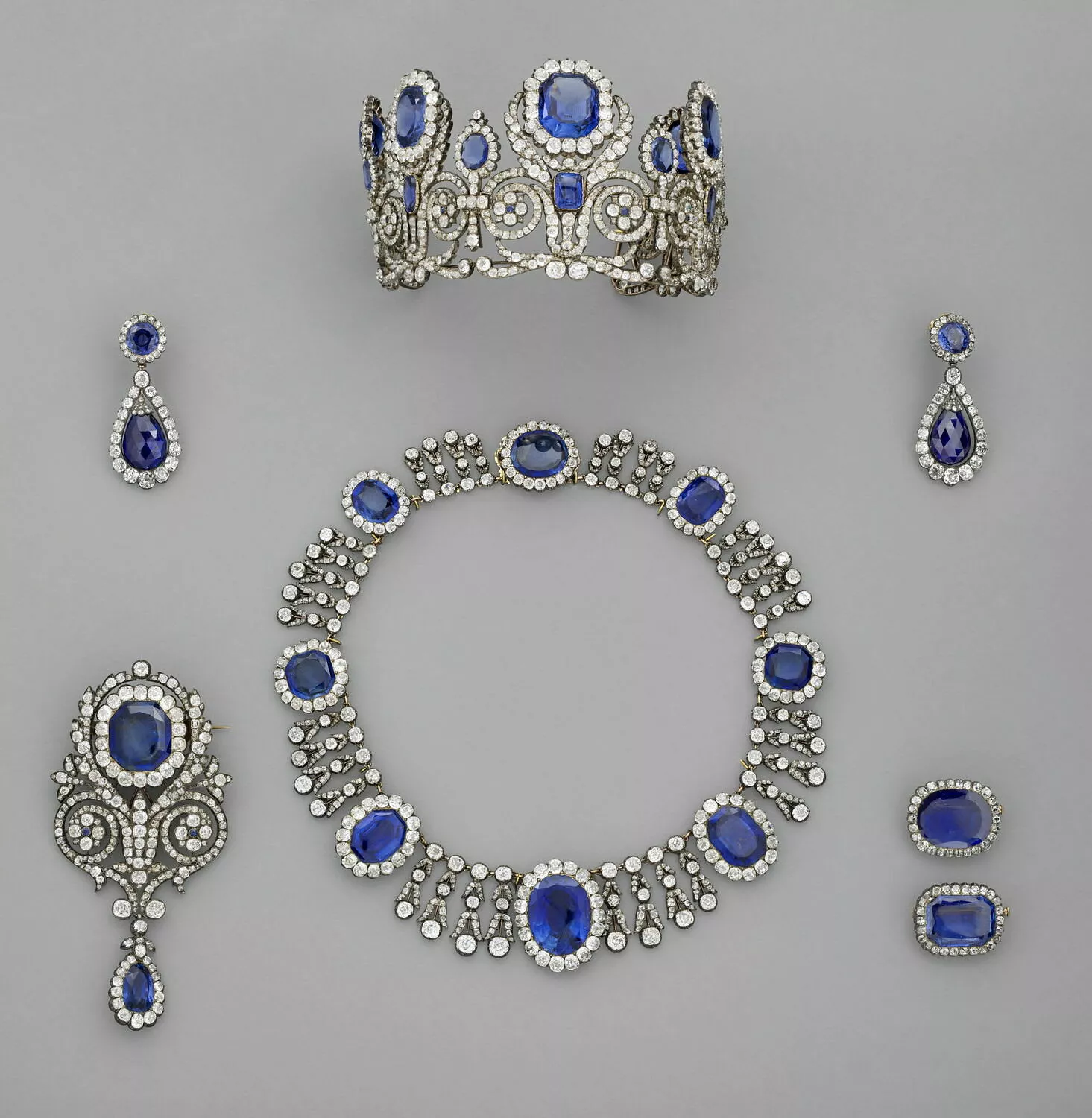 玛丽-阿梅莉王后是法国国王路易·菲利普一世的妻子。奥尔唐斯王后则是拿破仑三世的母亲。失窃的冠冕、蓝宝石项链和蓝宝石耳环由她们相继使用。