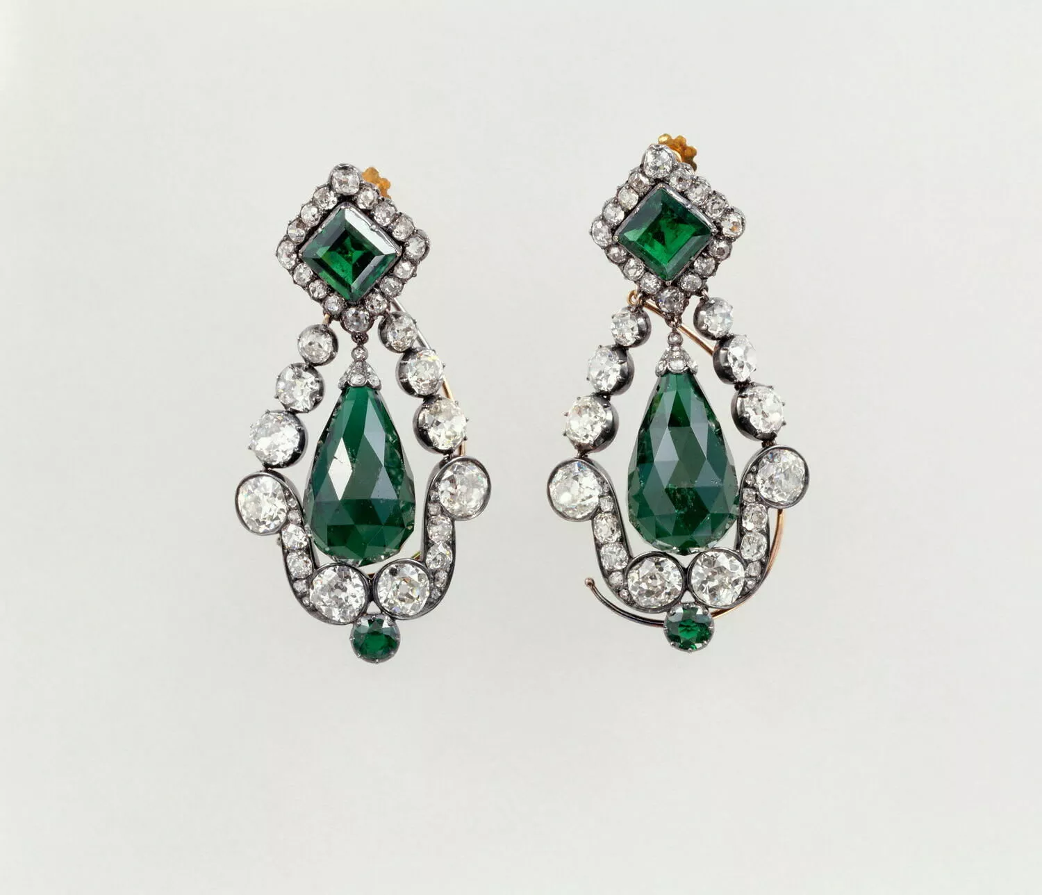 玛丽-路易丝王后的祖母绿耳环。(图:巴黎罗浮宫博物馆官网)