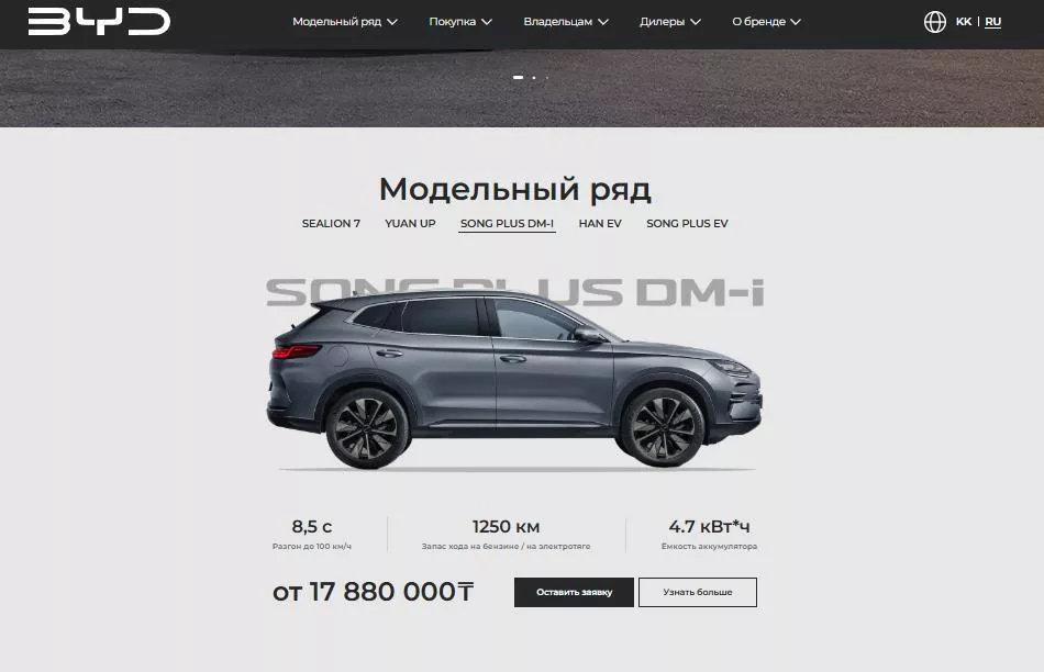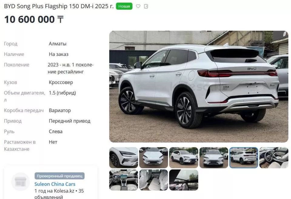 在哈萨克斯坦,一辆宋 PLUS DM-i比亚迪官方卖 1778 万(折合人民币 23.5 万),而当地的零公里二手车只需要
