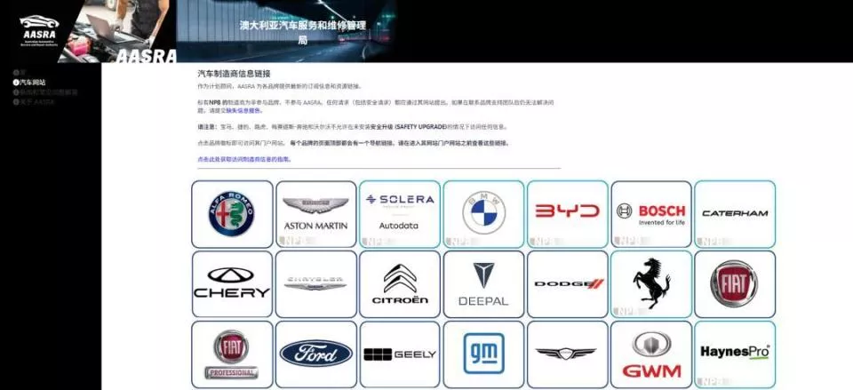 中国车企在澳大利亚汽车服务和维修管理局的网站上披露维修信息。