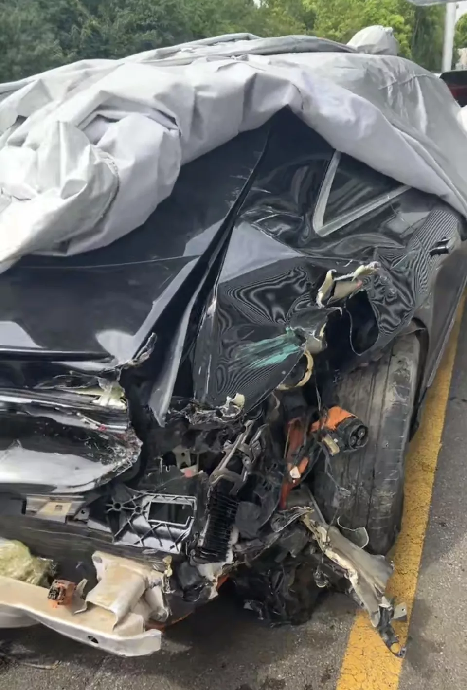 事故后拍摄的视频显示,车辆的右后方严重缺失,充电口裸露在外,左后方同样受损严重,甚至露出了电机,前部也因撞击变形。万幸的是,张女士仅受轻微脑震荡和擦伤。