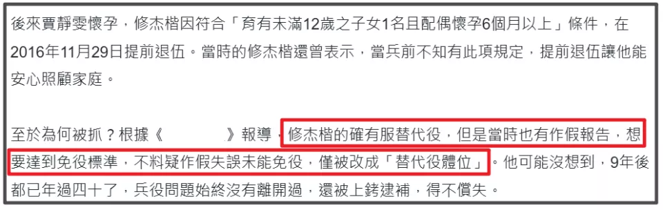 而修杰楷在2016年服了替代役,也符合提前退役资格,如今突然被拘提,经纪人也有些慌乱,先是回应表示正在了解中,紧接着台媒曝出,修杰楷认罪了。