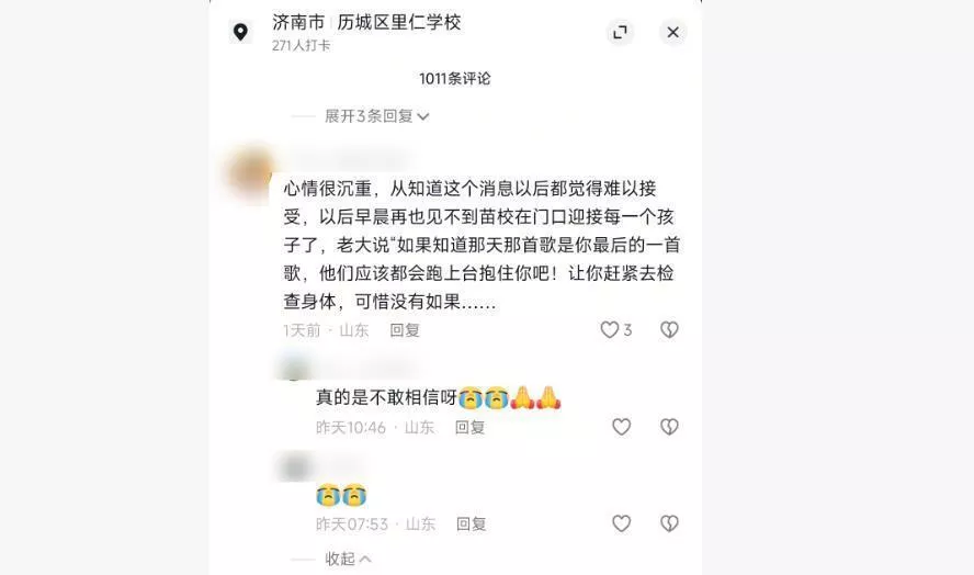 得知苗本臣突然逝世的消息后,上述视频中的男生也在网上留言,怀念这位他心目中“最好的校长”,并表示:“这次,我要把鸡排给他”。