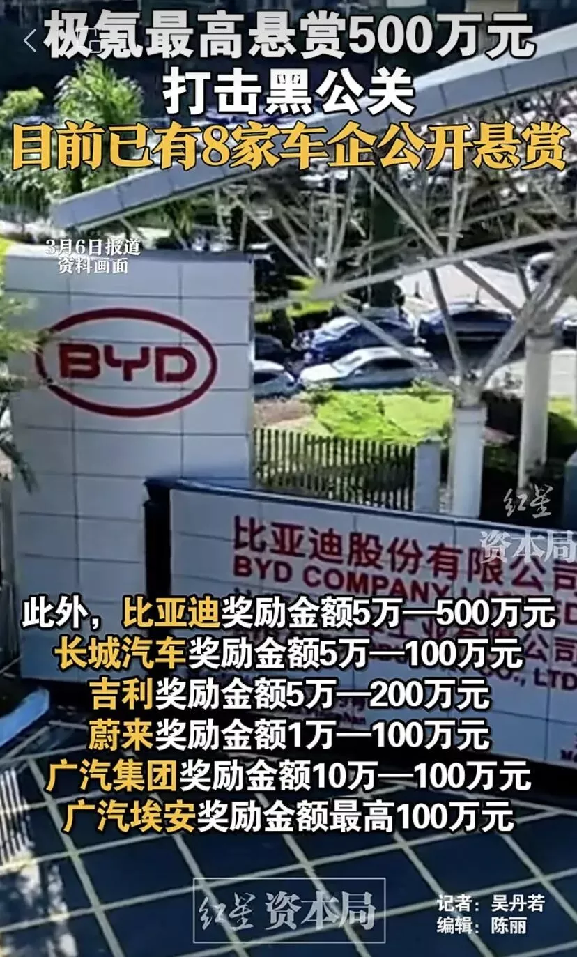 最近有一个发大财的机会介绍给大家,那就是向新能源汽车企业举报“黑公关”线索。
