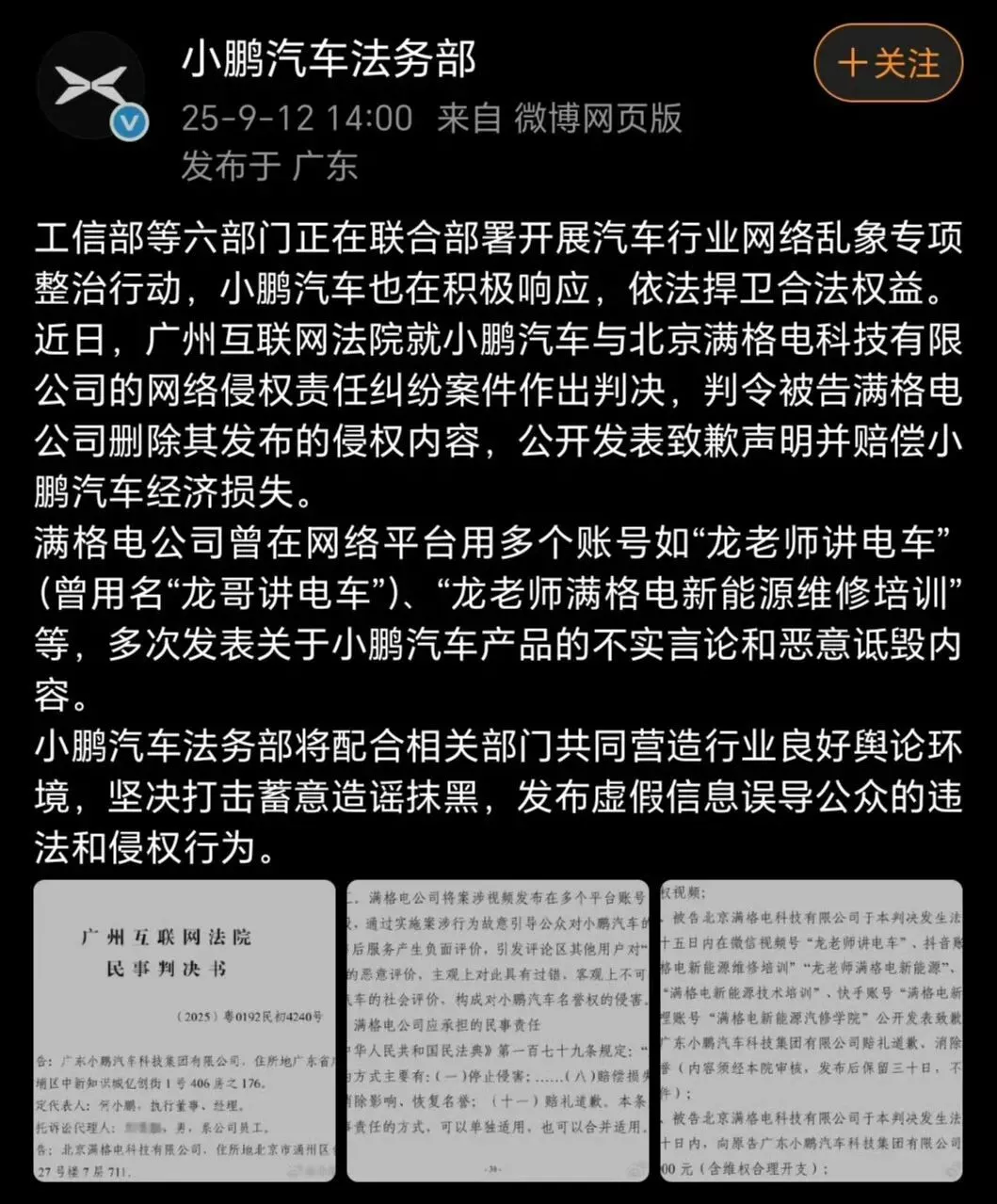 还有我们广州的小鹏汽车,也通过法务部发声明,要坚决打击蓄意造谣抹黑的违法和侵权行为,又一个网络黑公关的受害者。