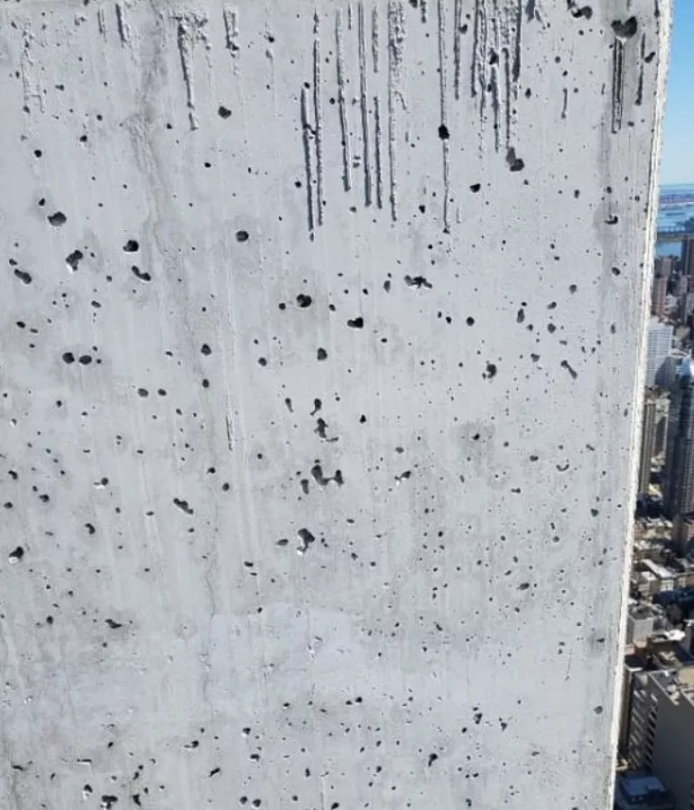 根据《纽约时报》调查,大楼外墙布满数百条裂缝,混凝土表面出现剥落与空洞,这些迹象显示这座细长的结构正承受超出设计预期的压力。独立工程专家警告,如果不进行耗资数亿美元的全面修缮,裂缝将持续扩大,最终可能危及居住安全,甚至威胁到下方行人的生命。