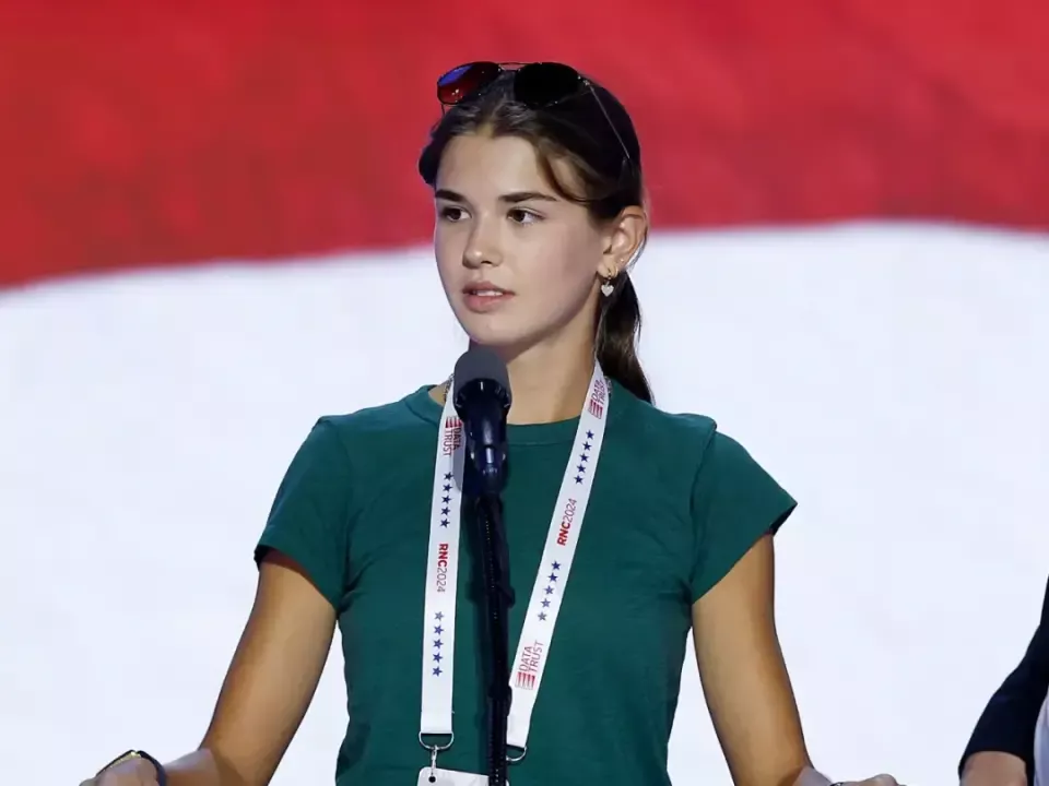 而凯最令公众印象深刻的登场,则要属2024年在美国共和党全国代表大会上的演讲。当天,为了给爷爷“拉票”,凯身穿白色裙子,化着精致妆容在父亲的介绍下走到舞台中央,发表了她人生中的第一场公众演讲。面对台下数千名观众的大场面,17岁的女孩竟然没有丝毫怯场。