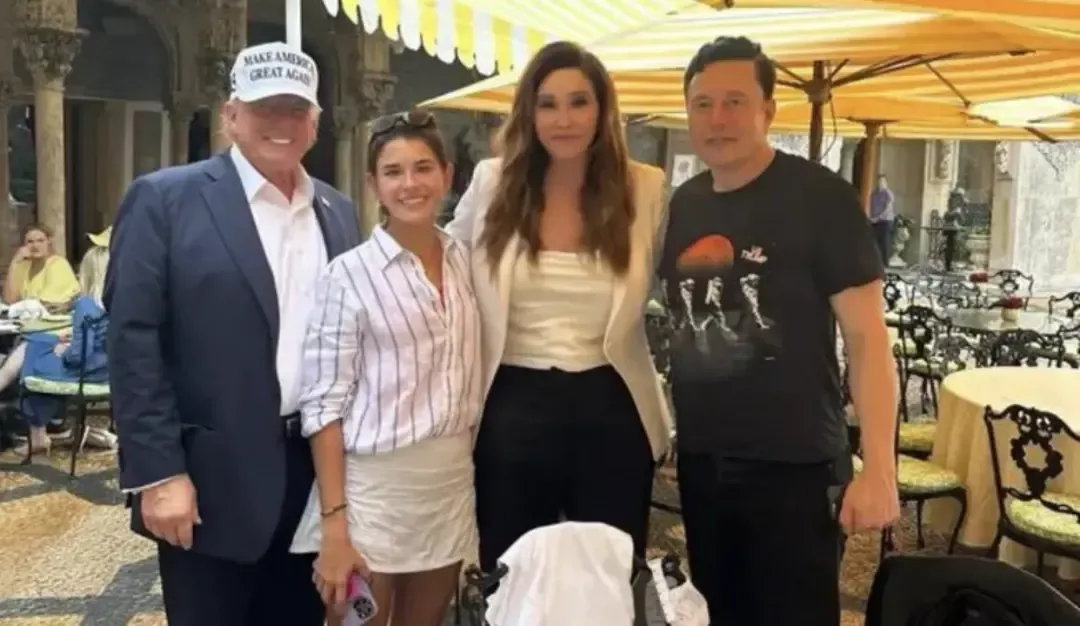 特朗普(左一)带孙女凯(左二)与马斯克(右一)共用早餐。
