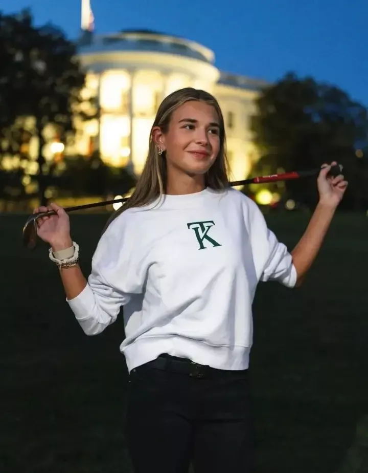 而这位年纪轻轻的姑娘显然也不满足于当网红。虽然才18岁,凯已经展现出的商业头脑远超她的同龄人。还是高三学生的她在今年9月推出KT服装品牌时,白宫就成了她宣传品牌的背景板,完美展示了如何将政治资本转化为商业价值。