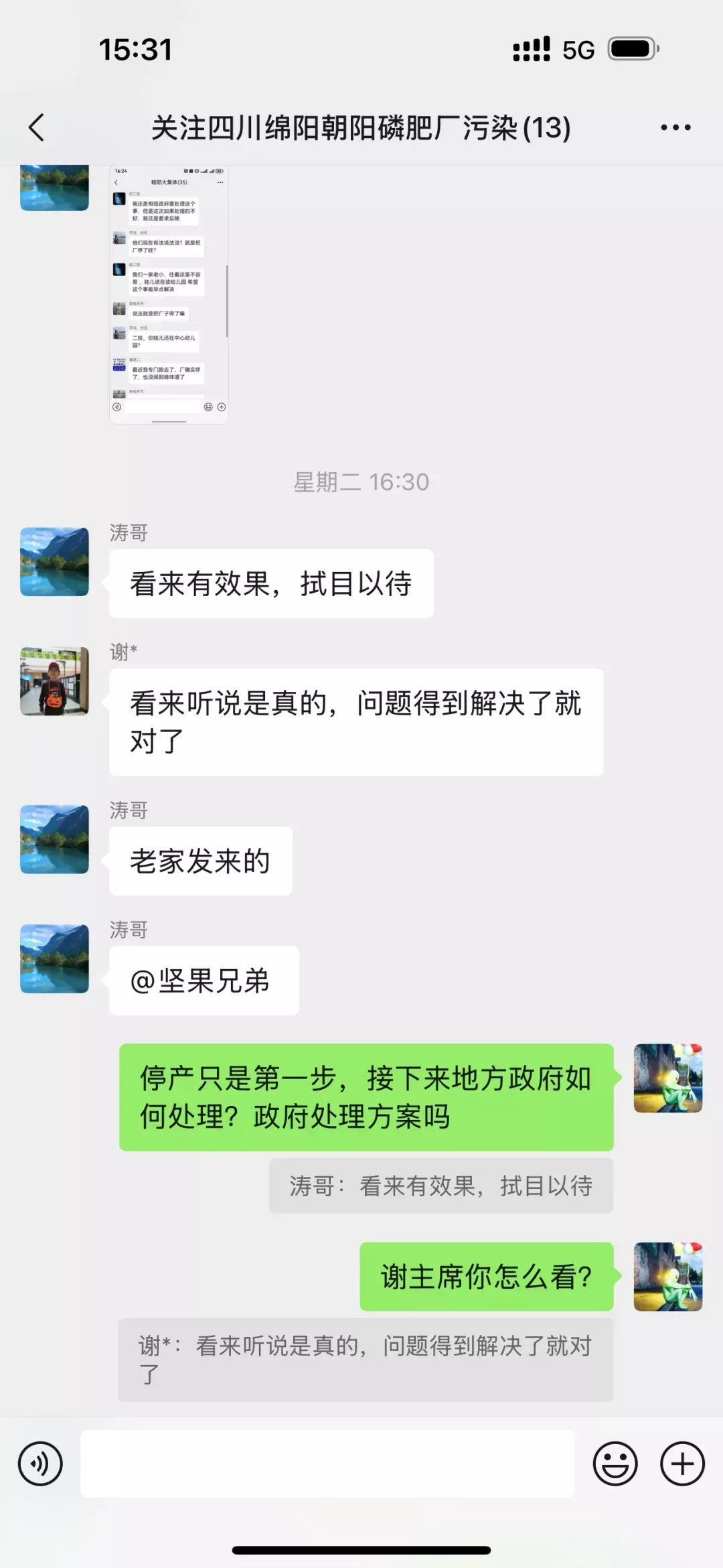 这680次点击,像是一场幽灵放映。大多数人甚至来不及看清内容,屏幕上的文字就已经化为乌有。没有想到,在这篇短暂的文章里附上的微信群的二维码“关注四川绵阳朝阳磷肥厂污染”,因此拉开一场大戏帷幕……