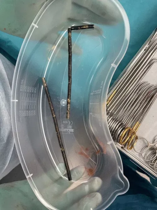 手术取出的磁铁链?来源:Lekamalage et al.,?NZMJ, 2025