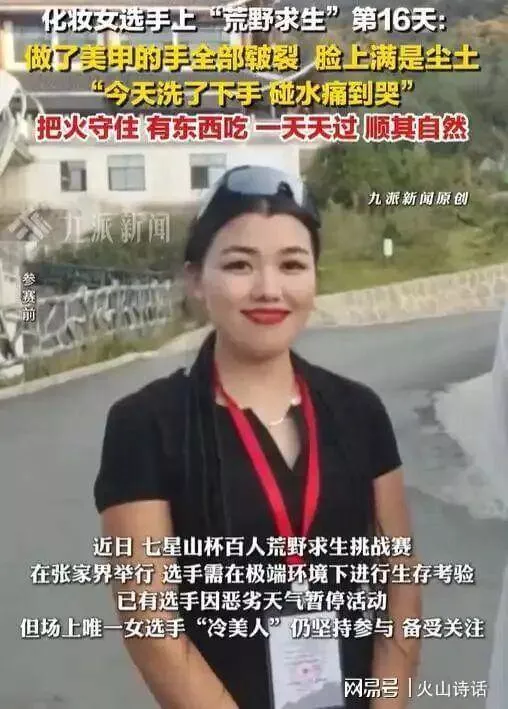 近日,湖南张家界七星山荒野求生挑战赛引发关注,已有选手因恶劣天气暂停活动,但场上唯一女选手“冷美人”仍坚持参与,备受关注。