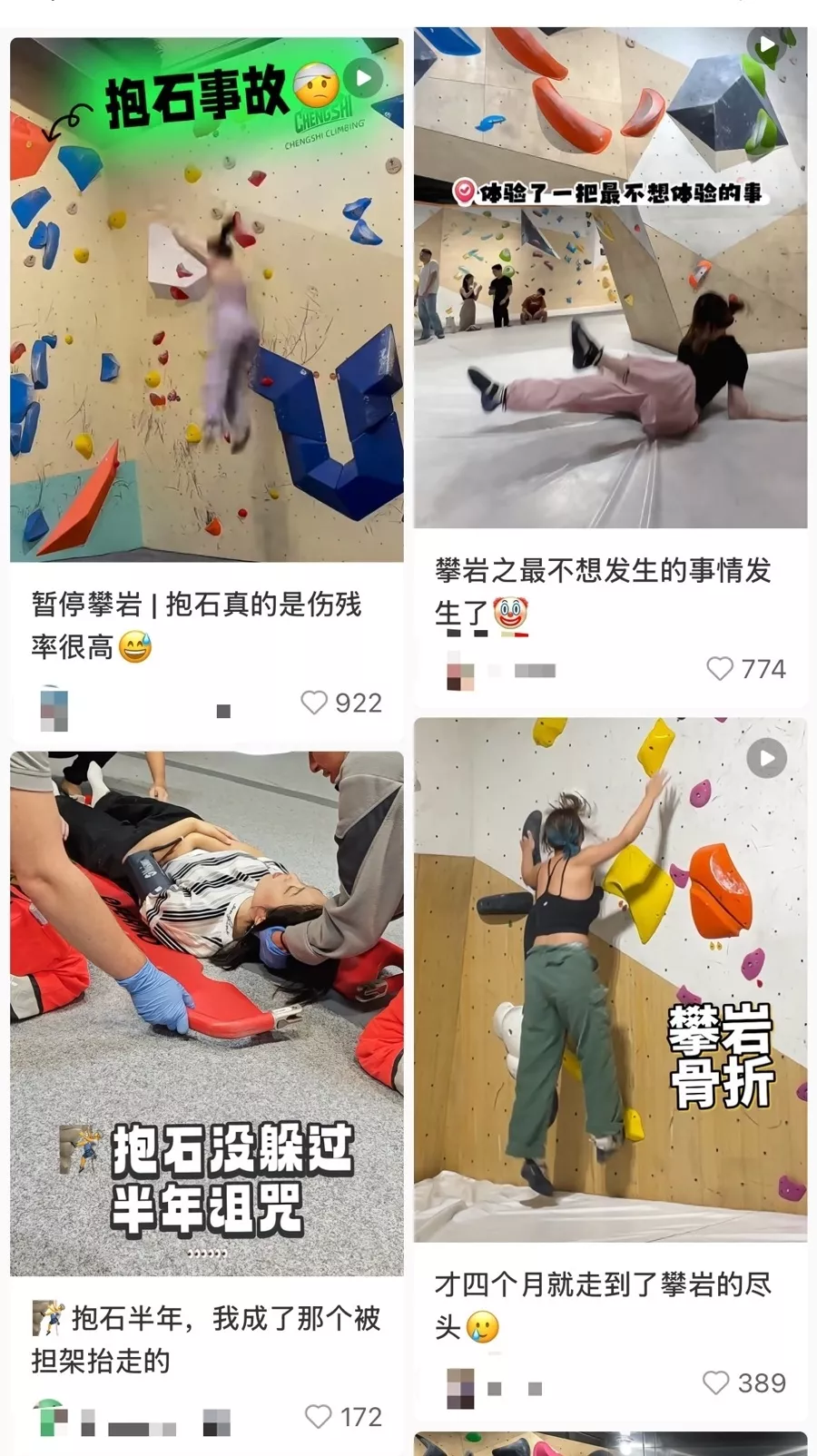 社交媒体上不少人分享抱石攀岩受伤经历。