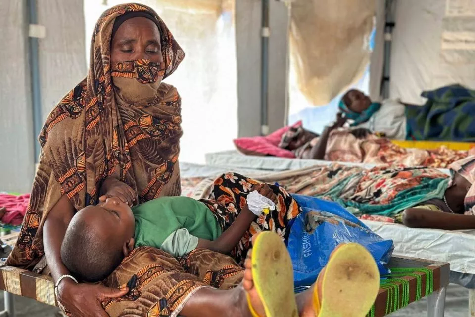 当地时间2025年8月14日,苏丹达尔富尔塔维拉市,霍乱感染者在苏丹西部难民营的霍乱隔离中心接受治疗。视觉中国 图