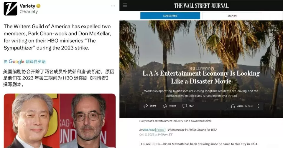 今年8月,原本在好莱坞混得风生水起的韩国导演朴赞郁。正是因为在罢工期间开工,被美国编剧协会宣布除名。