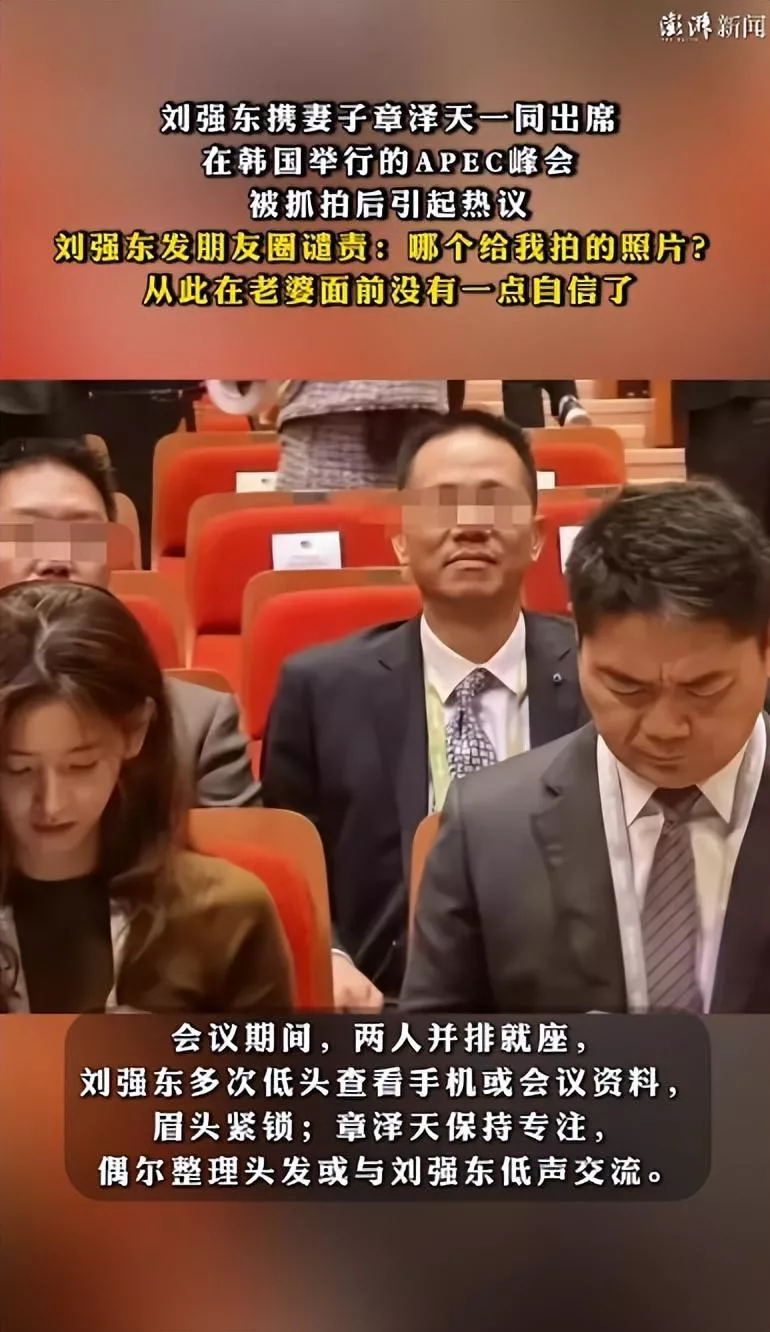 近日,刘强东携妻子章泽天一同出席在韩国举行的APEC峰会,现场有参会的企业家拍下了刘强东夫妇二人的照片,这是继同年5月马耳他同游后,时隔半年的首次公开合体。