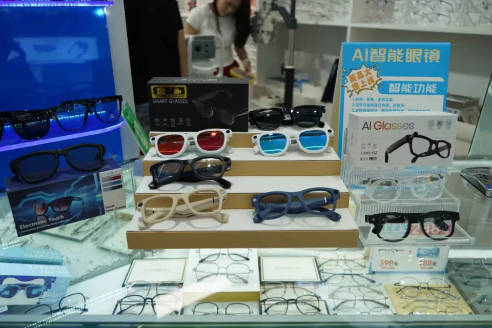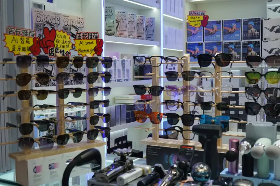 现在,即使在最老的赛格通信市场,也每走几步,就能看到一家在最显眼的柜台上摆着一排AI眼镜和AI翻译耳机的档口。而在华强电子世界二店、华强时尚数智中心这些更年轻的市场,已经开出了一批“AI集合店”。