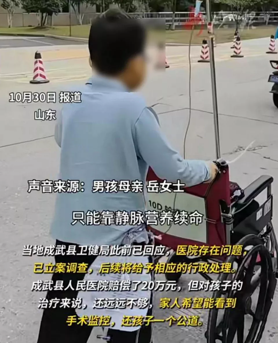 12岁男童6个器官遭到切除,仅能靠注射营养液维生。图/微博