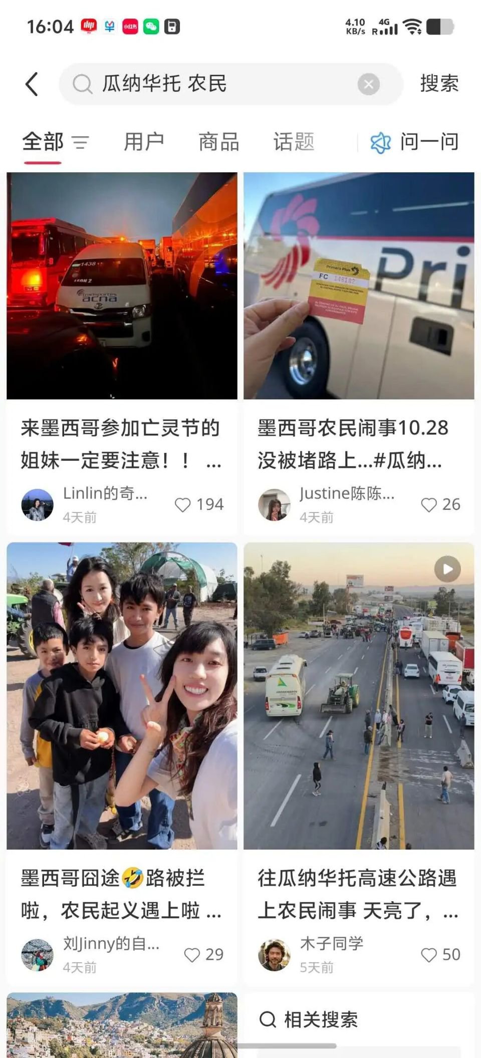 车刚出城不久,司机就摇下窗子开始紧张打电话,他说前方路段封路了,有些农民把拖拉机开出来堵路,因为当地玉米收购价格过低,农民们要通过阻止亡灵节游客的方式来给墨西哥政府添堵。