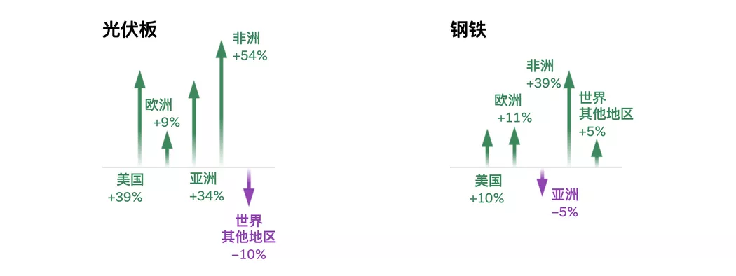 世界其他国家正夹在这两大超级经济体之间。包括越南(增长28%)和欧盟成员国(增长11%)在内的部分国家对中国出口产品给本国产业带来的风险深感担忧,中国在欧洲等地区也面临着关税形式的抵制。而阿根廷(增长57%)和尼日利亚(增长45%)等其他国家则在采购中国低成本技术以实现经济现代化,但这也导致它们与中国的贸易逆差进一步扩大。