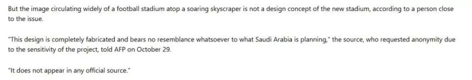 沙特建造的“空中足球场”画面流出?确有计划,但网传视频是AI