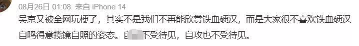 这种傲娇的语气,和他本人的形象搭配在一起,显得有些怪怪的,有种大老爷们卖萌的鬼畜感,还让人想起了男星吴京。