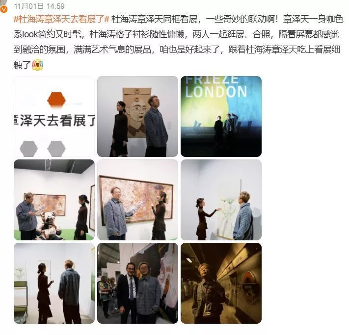 他们在韩国的合体行程一结束,立刻就回归彼此的单人行程,章泽天又飞去伦敦,和男星杜海涛一同看展。