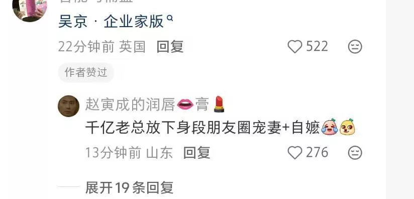 但也有很多网友不愿意买账,觉得他这些接地气都是有目的的,就是在为自己的品牌造势炒作,顺便秀下恩爱,发一个朋友圈就想达成“一石二鸟”的效果,着实是很精明了。