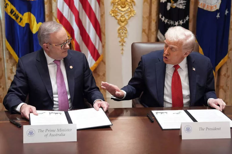美国总统川普和澳洲总理阿尔巴尼斯,上月签署了1项关于关键矿产和稀土的协议。(美联资料照)