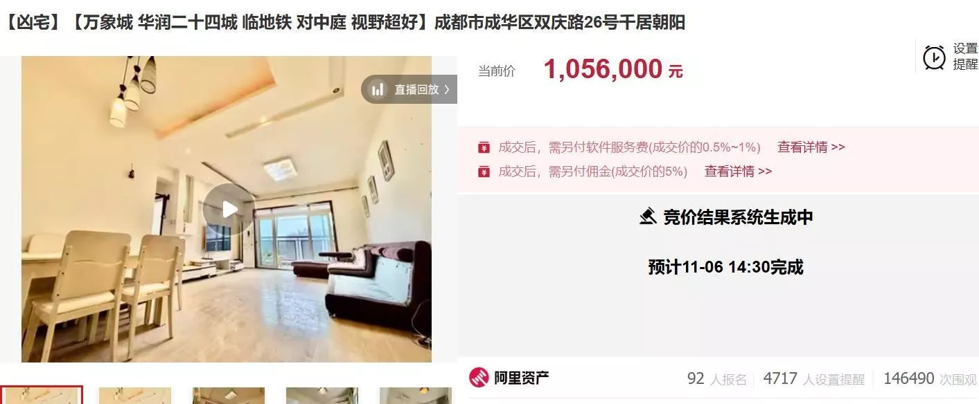 据阿里拍卖网显示,该房屋位于成都市成华区双庆路某小区,建筑面积89.70平方米,精装修且临近地铁,市场价为160馀万元。该房屋还特别注明:“存在非正常死亡事故,请谨慎购买。”