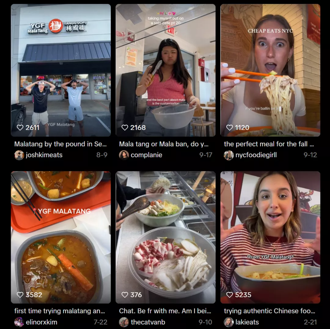 在TK上,老外疯狂发杨国福打卡,都说很美味,还大方分享自己的搭配,哪个汤底更百搭、哪个丸子好吃,哪些青菜适合煮汤,侃侃而谈,如数家珍。