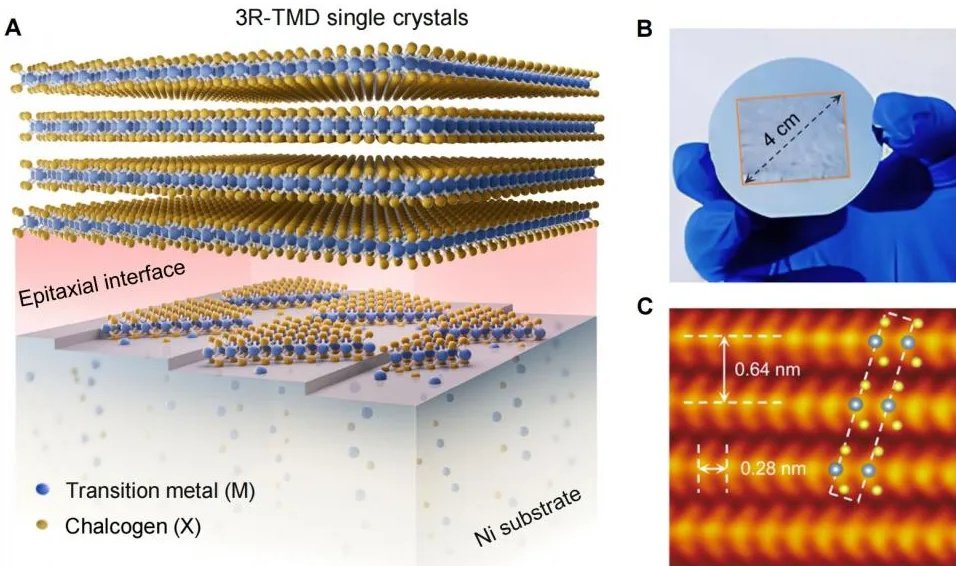 用“晶格传质-界面生长”新方法制备晶圆级二维晶体。图源:中国人民大学