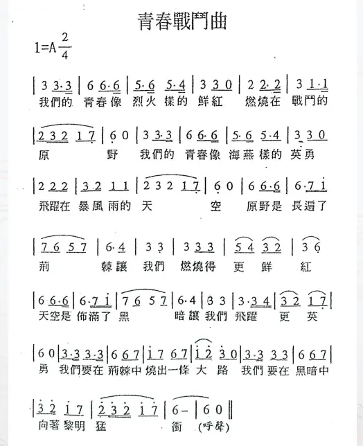 《青春战斗曲》曲谱