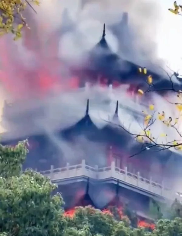 11月12日,苏州永庆寺突发大火,木质结构建筑瞬间被大火吞灭,目前虽已扑灭明火,但楼体已全部被毁仅剩框架。据当地最新通报,火灾未造成人员伤亡,亦未对周边林区造成影响;经初步调查,此次火灾係游客使用香烛不慎引发。